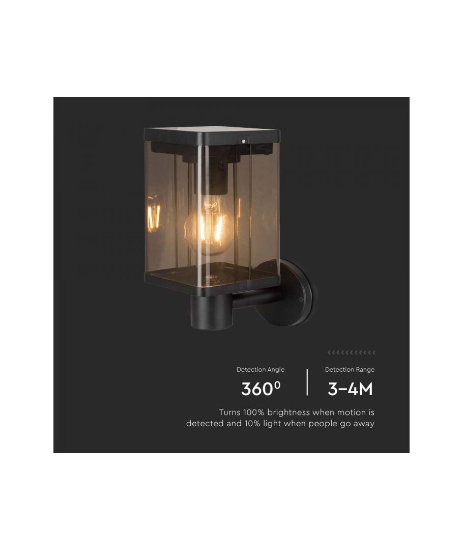 Vegglampen er en stilig og praktisk løsning for å lyse opp uteområdet ditt. Med sin sorte design og sensorfunksjon kan den automatisk slå seg av og på avhengig av bevegelse i en radius på opptil 4 meter.