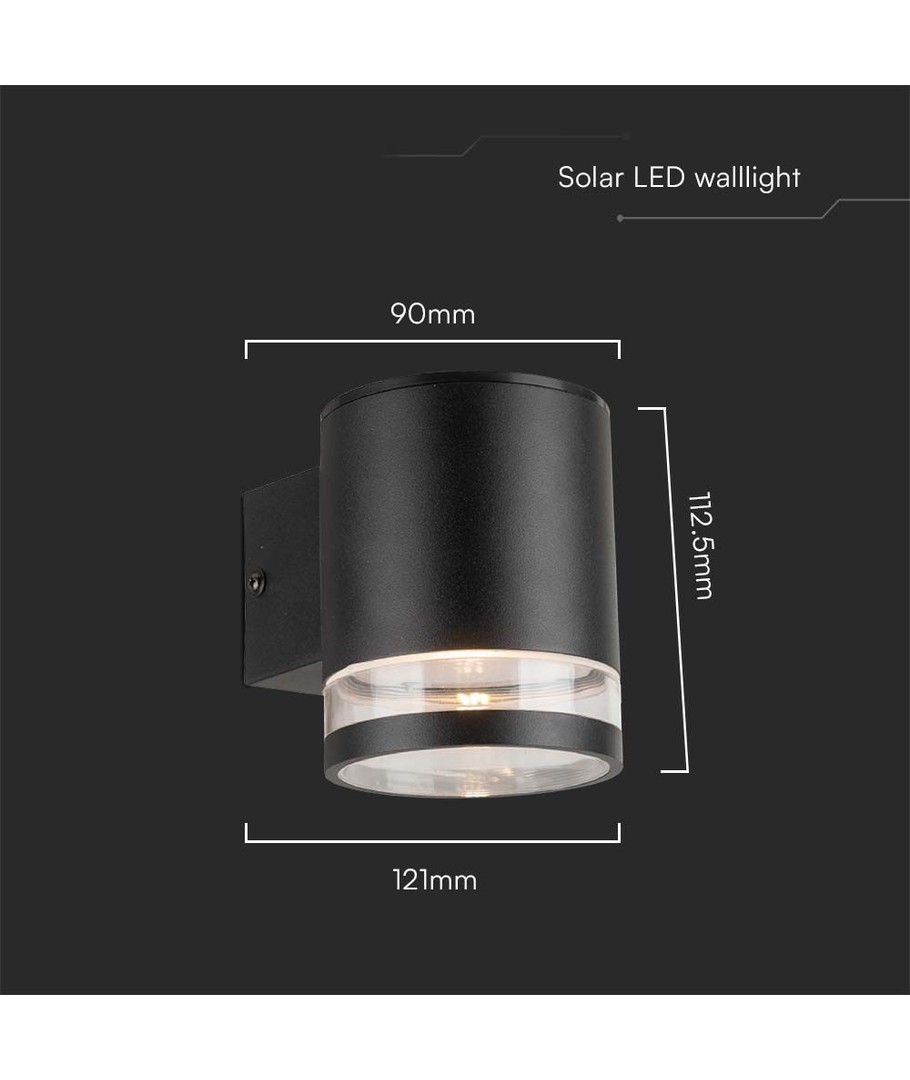 Skap en atmosfærisk atmosfære og forleng dine utendørsopplevelser med V-Tac 1W LED Solar vegglampe i sort.