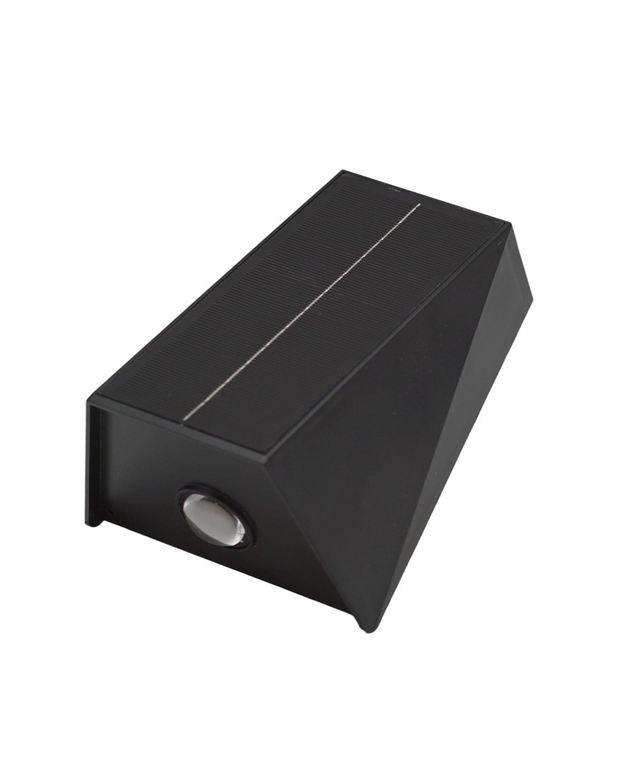 Solcelle vegglampe i svart, som er designet for å levere belysning med både opp- og nedlys.