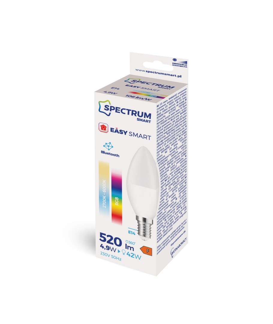 Oppgrader hjemmets belysning med en E14 4,9W Smart LED kertepære som tilbyr allsidighet og kontroll i fingertuppene. Denne pæren er en del av den nyeste generasjonen av LED-teknologi, utstyrt med RGB+CCT-funksjonalitet og Bluetooth Mesh-tilkobling, slik at du enkelt kan styre belysningen fra smartenheten din.