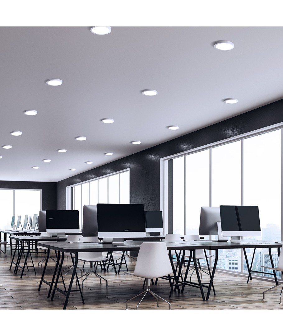 Det slanke og moderne designet har en diameter på 170 x 35 mm og passer i en hul størrelse på 145 mm. Selv om lampen har en IP20-klassifisering, som betyr at den ikke er vannbestandig, passer den perfekt i tørre inneområder der funksjonalitet og estetikk er viktig.
