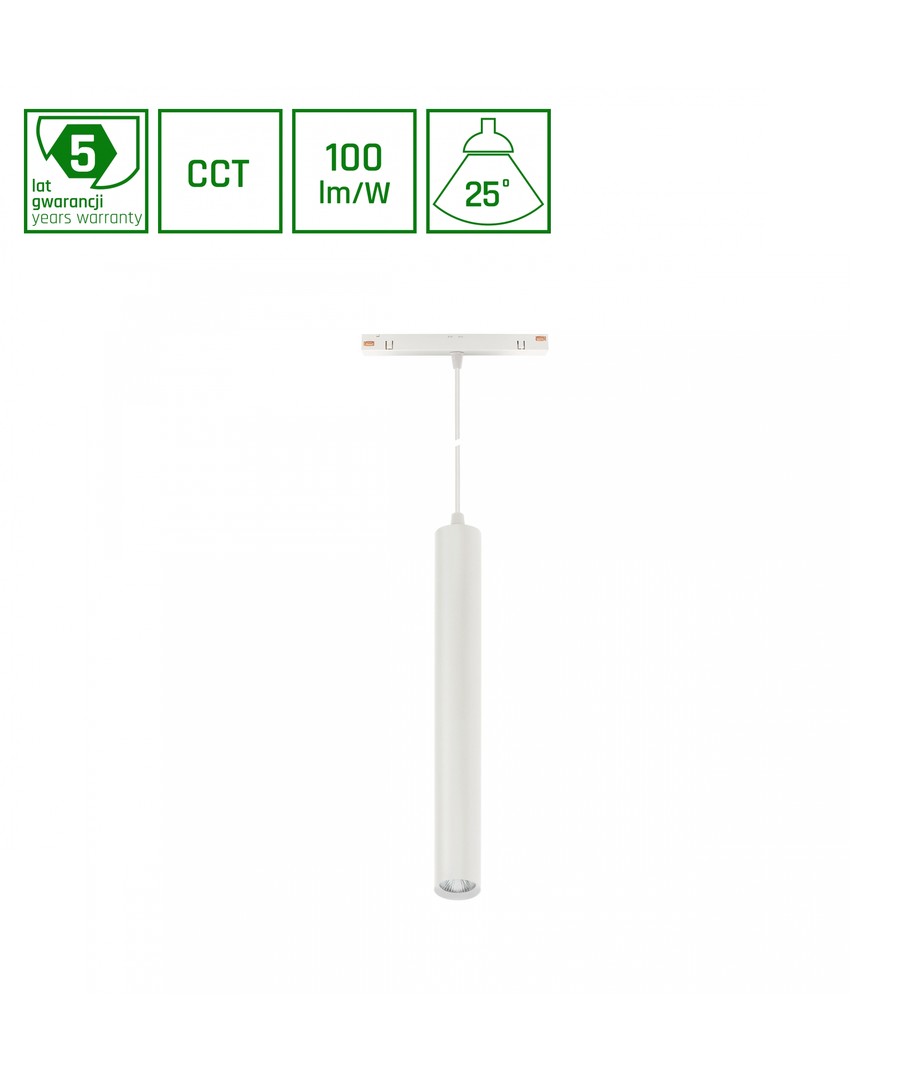 Det stilige Hangit Hengende Skinne Lys er en ideell belysningsløsning for moderne interiør. Denne lampen har en effekt på 12W og gir en konsentrert belysning med en spredningsvinkel på 25 grader, perfekt for å fremheve spesifikke områder i rommet.