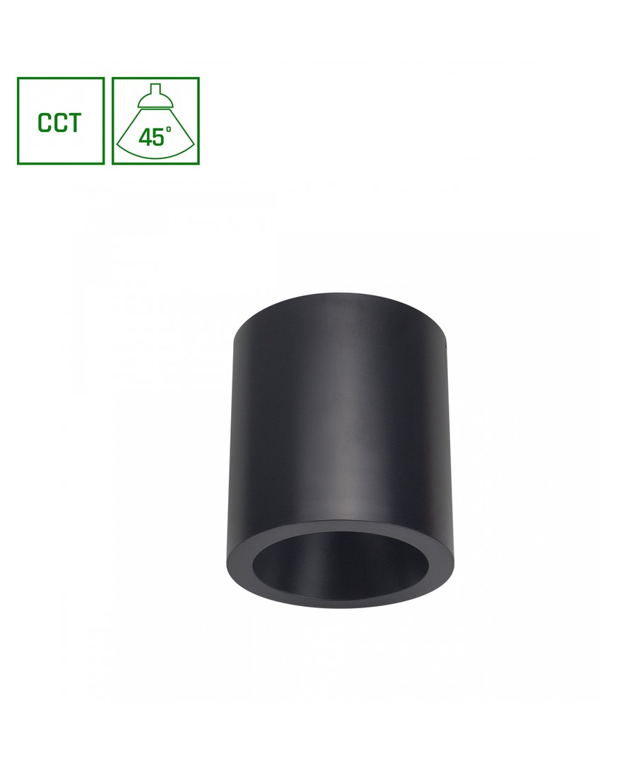 Selv om lampen ikke er vannbestandig (IP20), gjør det elegante runde, svarte designet den til en visuelt tiltalende komponent i interiøret ditt. Perfekt for tørre steder innendørs.