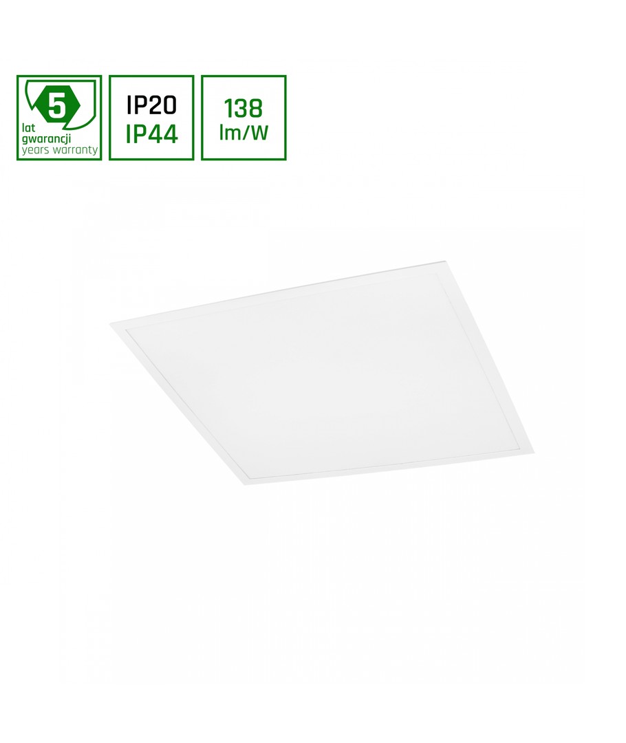 Lampen må kobles til en 230V forsyning og har en effekt på 40W. Med en dimensjon på 595 x 32 x 595 mm, passer panelet perfekt i standard himlinger.