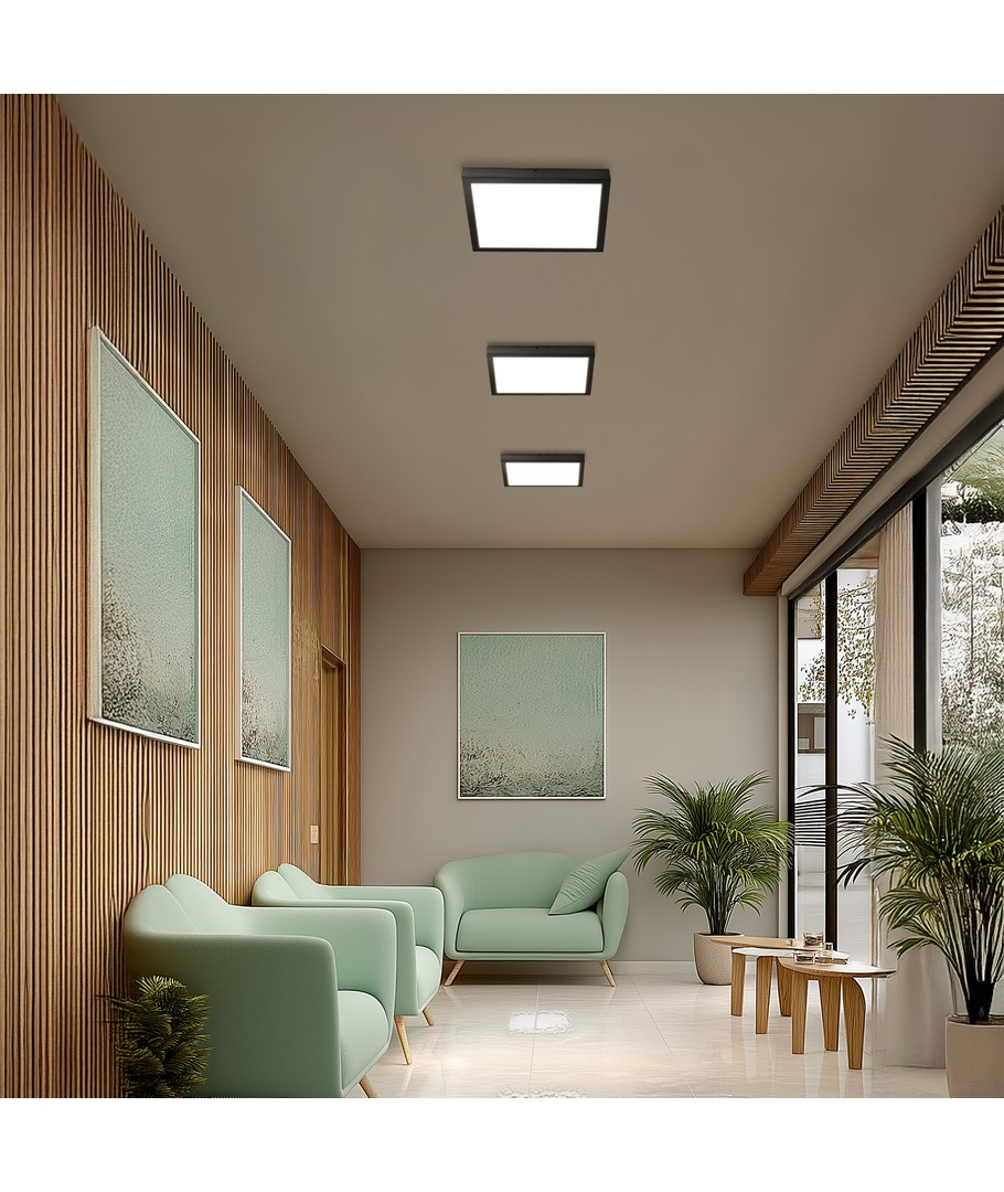 Robust LED taklampe i et stilrent svart design, som passer perfekt til moderne rom.
