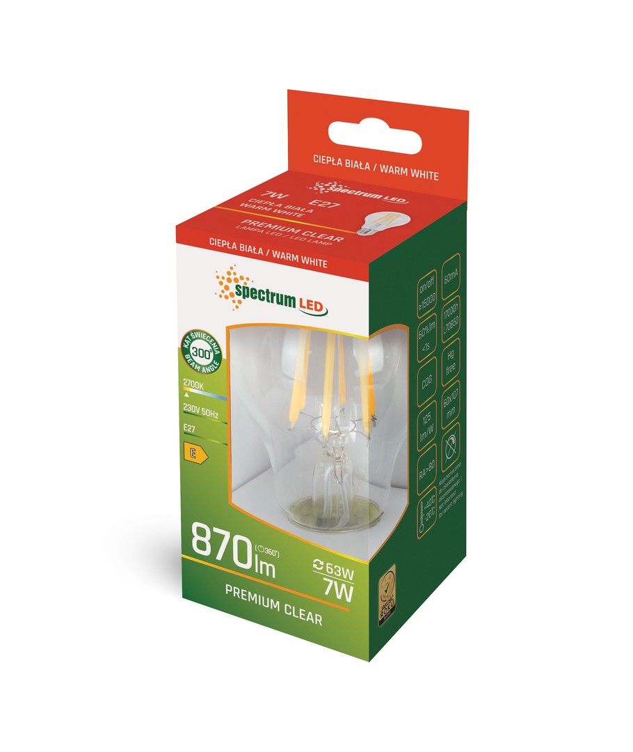 Pærens klare overflate og kulltråddesign gir en estetisk tiltalende vintage-look, samtidig som den oppfyller moderne krav til belysningseffektivitet og levetid. Dette gjør den til det perfekte valget for de som ønsker en klassisk stil uten å skuffe på ytelse.