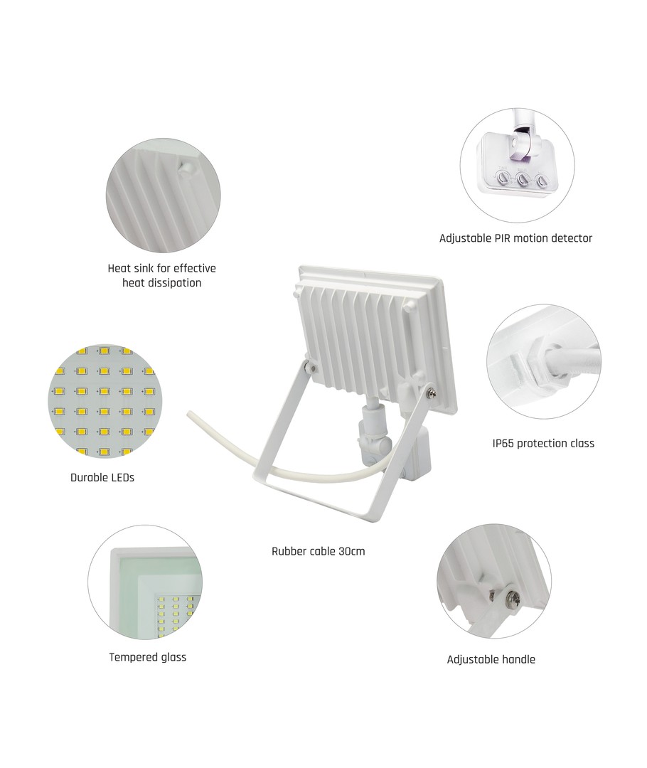 NOCTIS LUX 3 er utstyrt med en PIR-sensor, noe som betyr at lyset aktiveres automatisk ved bevegelse. Dette gir ikke bare økt sikkerhet, men også høyere energieffektivitet. Med en lysstyrke på 4500 lumen og en bred lysspredning på 100 grader, sørger lyskasteren for å lyse opp store områder med jevn fordeling av lyset.