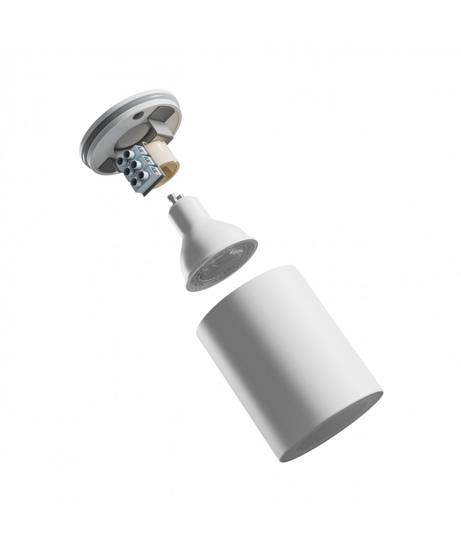 GU10 påbygningsspot i hvit er en stilfull og funksjonell taklampe som passer perfekt til både våt- og tørrsoner takket være sin IP44-klassifisering.