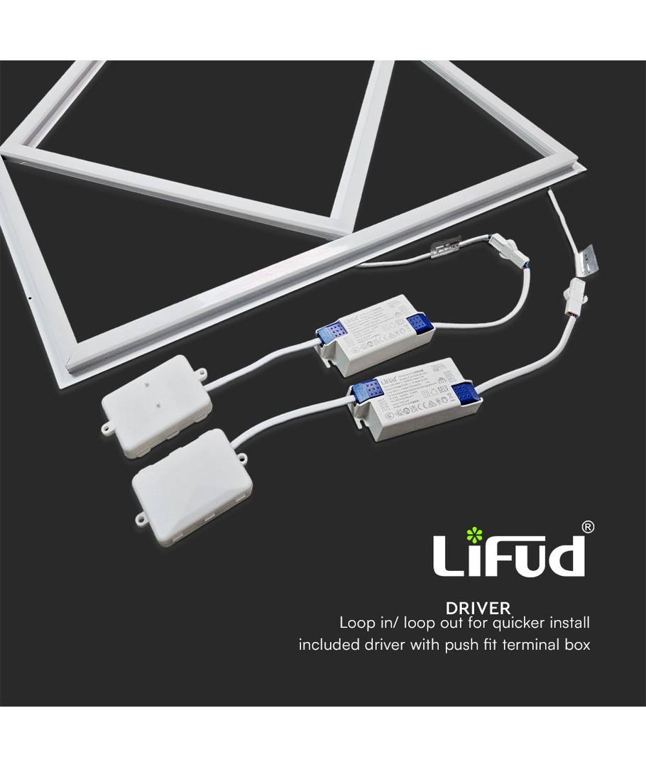 Da panelet har 2 drivere, kan man styre midten og kanten individuelt, både som av/på eller ved å kjøpe til dimbare drivere.