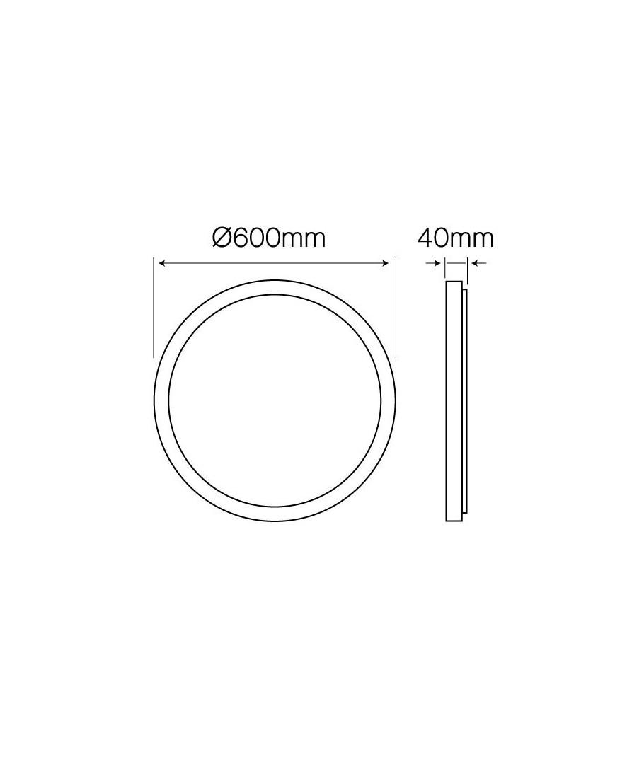 Målene på 40 x Ø600 mm gjør at panelet passer perfekt i ulike rom og innstillinger, og utformingen sikrer at lysopplevelsen er optimal for enhver bruk.