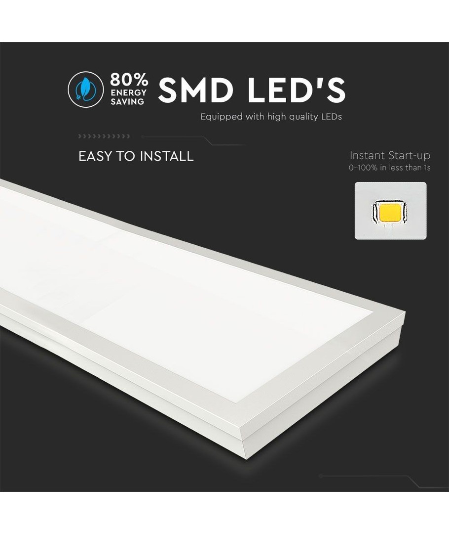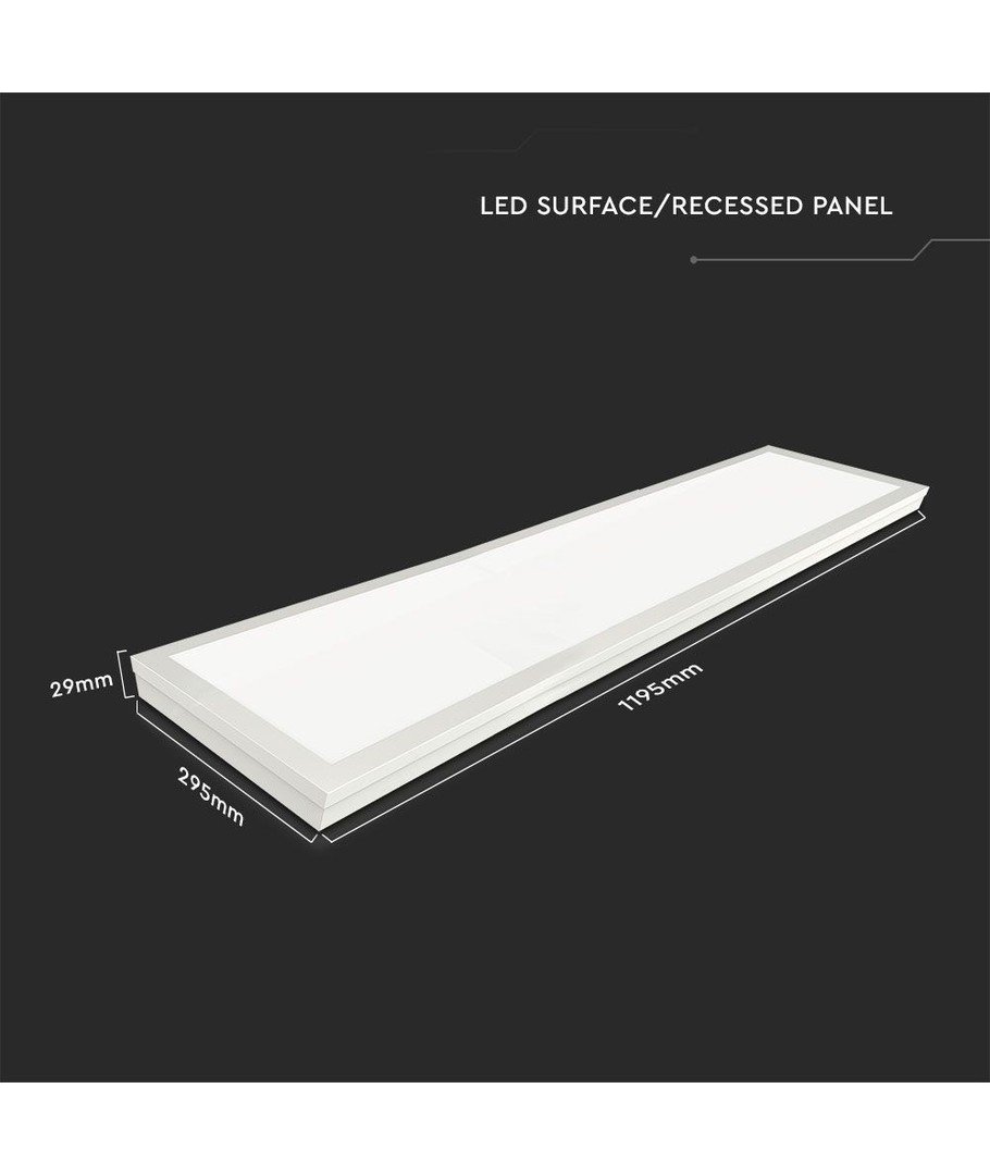 Med dimensjoner på 1195 x 29 x 295 mm, er dette LED-panelet designet for å passe inn i de fleste miljøer. Den innebygde hvite rammen gir et moderne uttrykk.