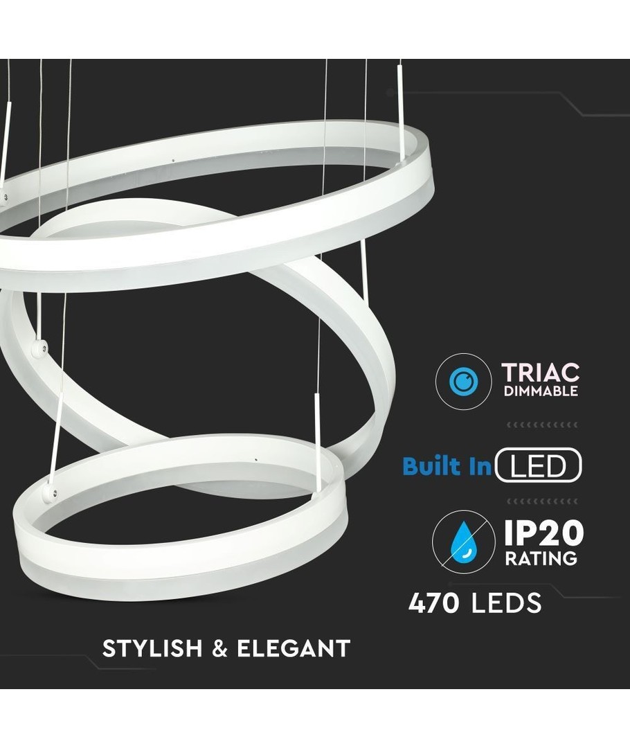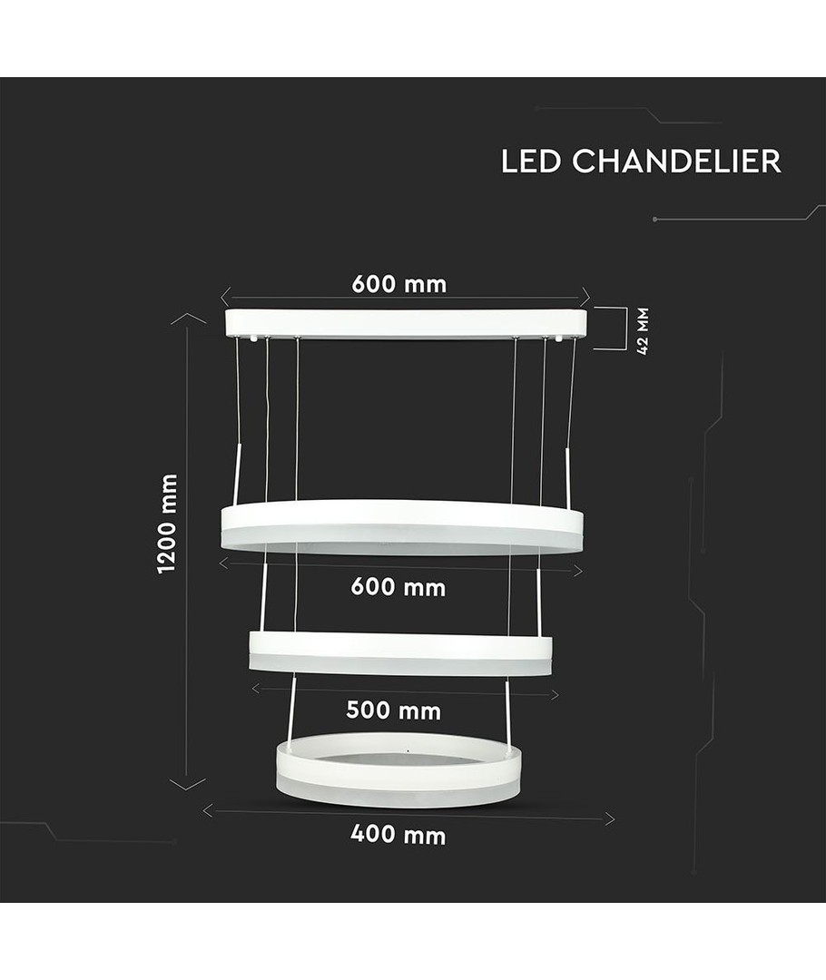 Opplev hvordan stil og funksjonalitet møtes i en perfekt harmoni med V-Tac 92W lysekrone med 3 ringer. Dette er mer enn bare en lampe; det er et kunstverk som vil heve estetikk og atmosfære i ethvert rom.