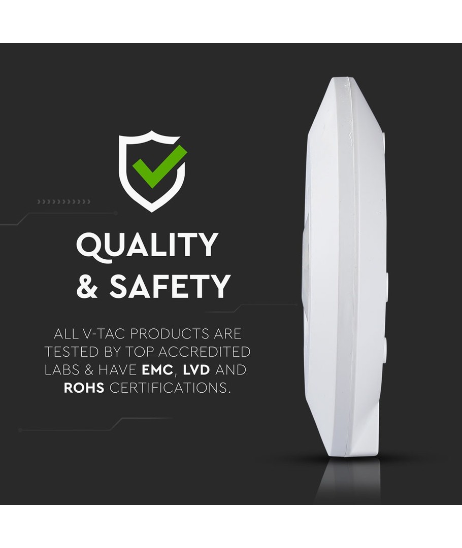 V-Tac Bevegelsessensor 360° PIR er en effektiv og pålitelig løsning for innendørs belysningskontroll, som optimaliserer energiforbruket ved å detektere bevegelser innenfor et bredt område.