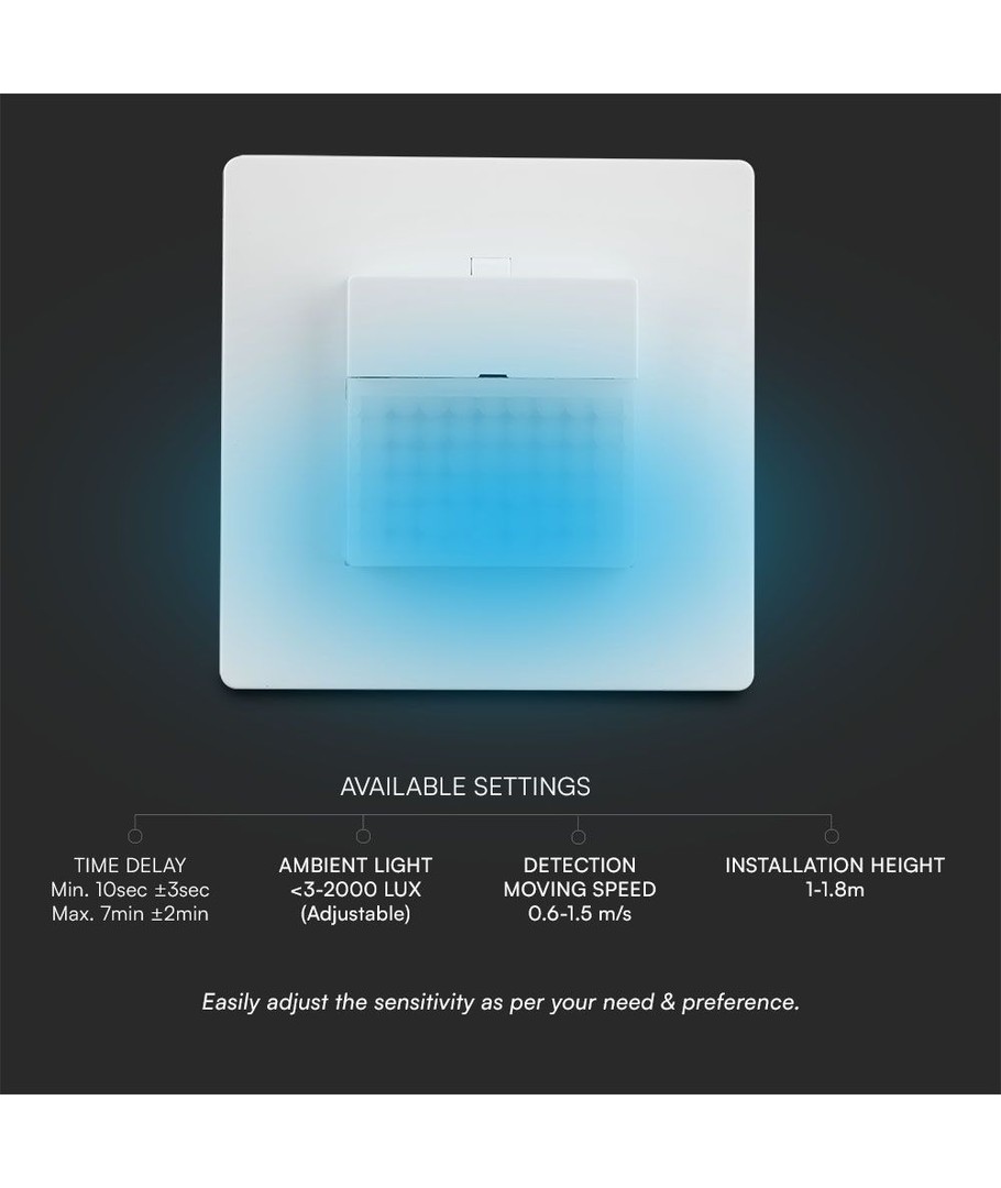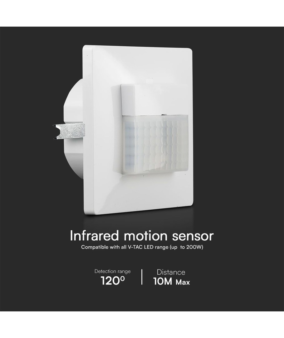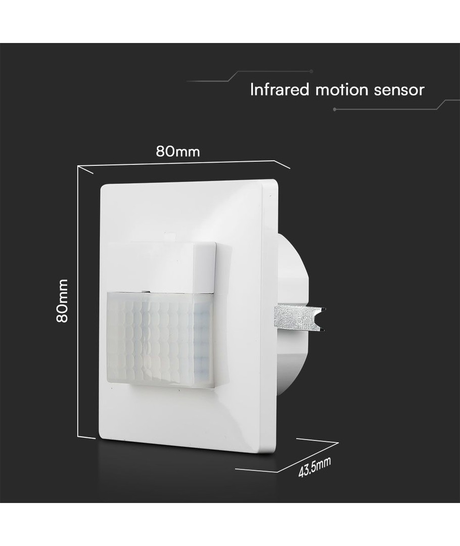 Den veggmonterte bevegelsessensoren i hvit er designet for innbygging og tilbyr presis bevegelsesregistrering med infrarød PIR-teknologi, noe som gjør den ideell for automatisering i hjemmet eller næringslokaler.