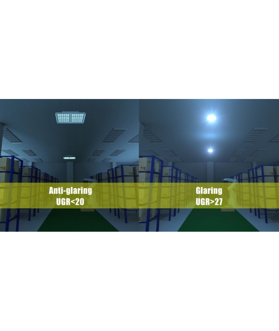 Lampen må kobles til 230V forsyning og kommer i to forskjellige varianter: Dimbar og 0/1-10V dimbar. Med en produsentgaranti på 5 år og en forventet driftstid på opp til 50.000 timer, takket være LED av høy kvalitet og profesjonell kjøling, kan du være sikker på en pålitelig og langvarig belysningsløsning.