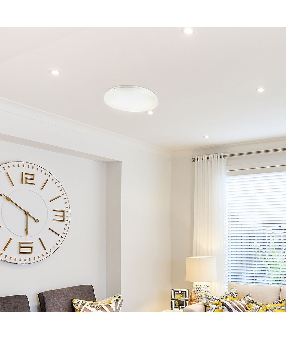 Med en lysstyrke på 2160 lumen kombinert med en bred lysspredning på 120 grader, gir denne taklampen en jevn og effektiv belysning av rommet. Dette gjør den ideell for både stue, kjøkken og arbeidsrom.