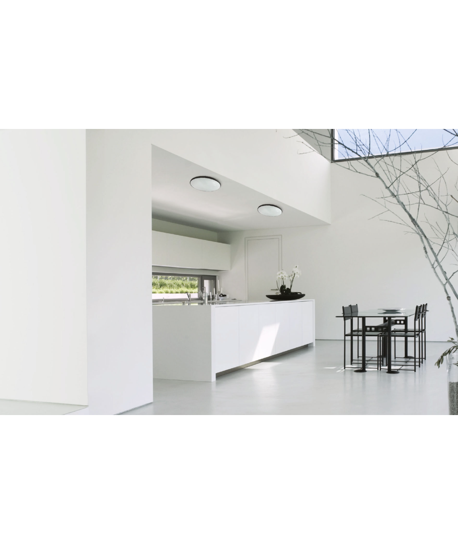 Designet med en elegant hvit kant og en medfølgende sort ring, blander denne lampen seg sømløst inn i de fleste interiørstiler. Den enkle, nettverdige profilen på kun 5,2 cm i høyden gjør den til et perfekt valg for lavere tak.