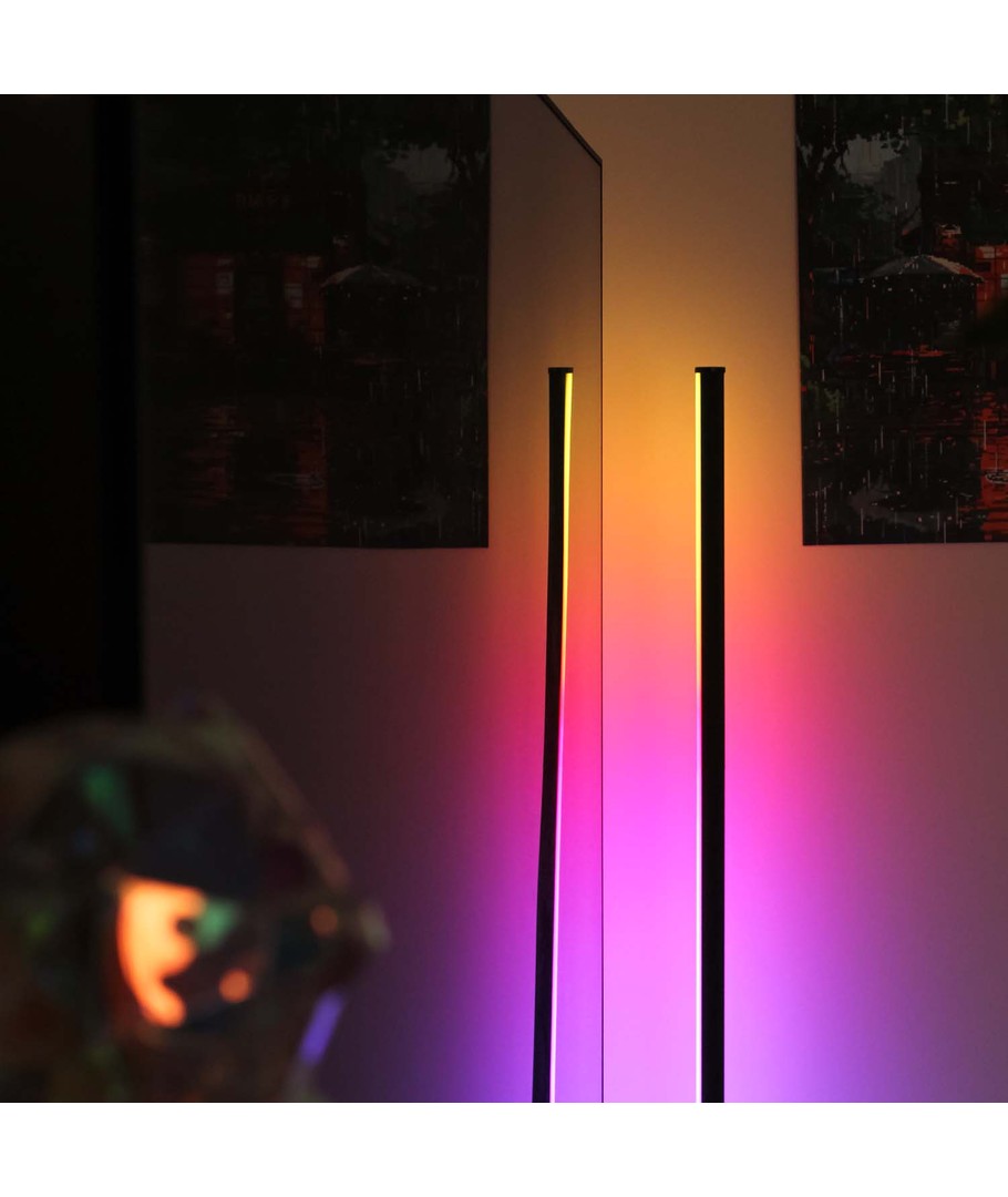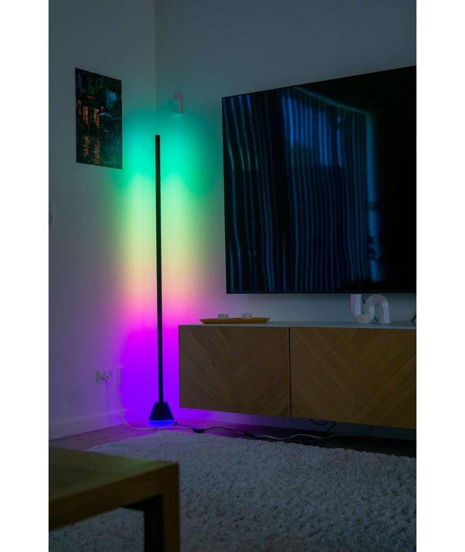 Denne gulvlampen er ikke bare kul å se på – den leverer både RGBIC-effekter, justerbart hvitt lys (CCT) og til og med lys i foten, som gir en helt unik stemning i rommet. Perfekt for spillhjørnet, stuen eller når du vil skape en atmosfære utover det vanlige.