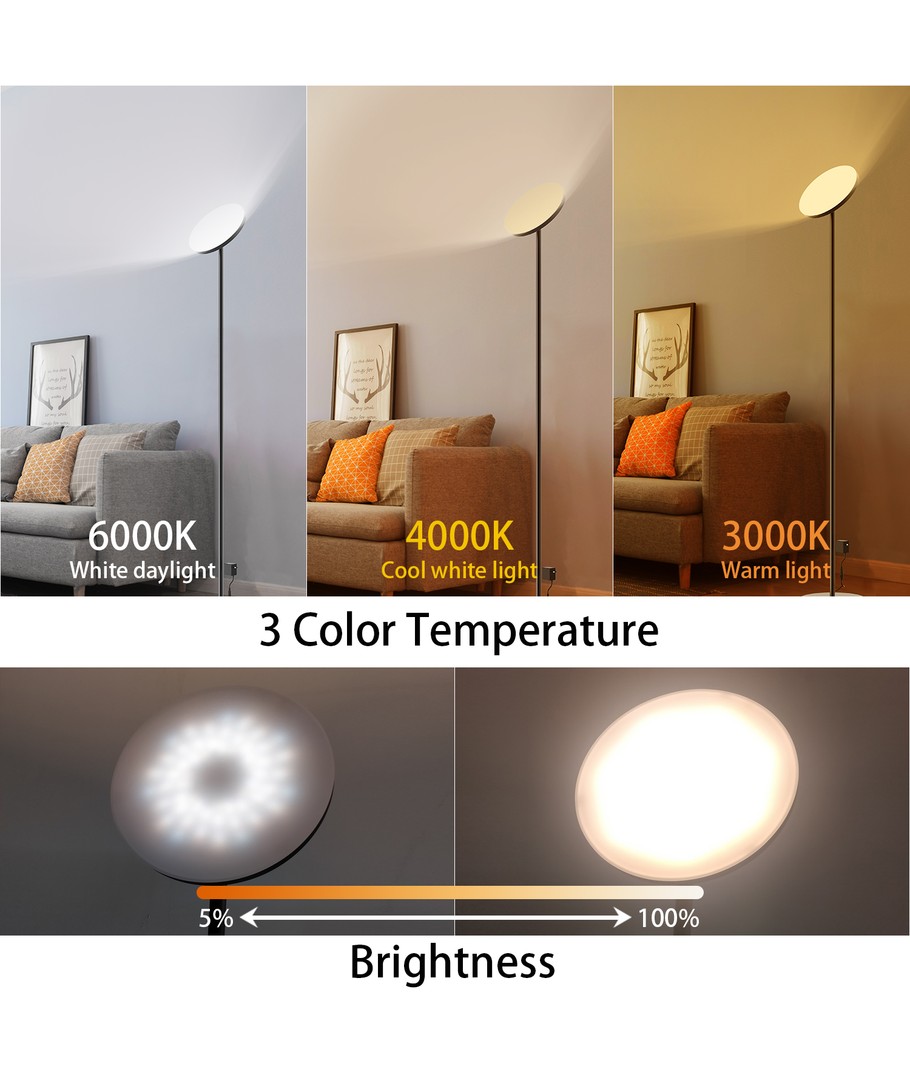 Denne gulvlampen har en effekt på 24W, noe som gir et sterkt og klart lys som dekker hele rommet. Takket være en spredningsvinkel på 180 grader sikrer lampen en utrolig jevn fordeling av lyset.