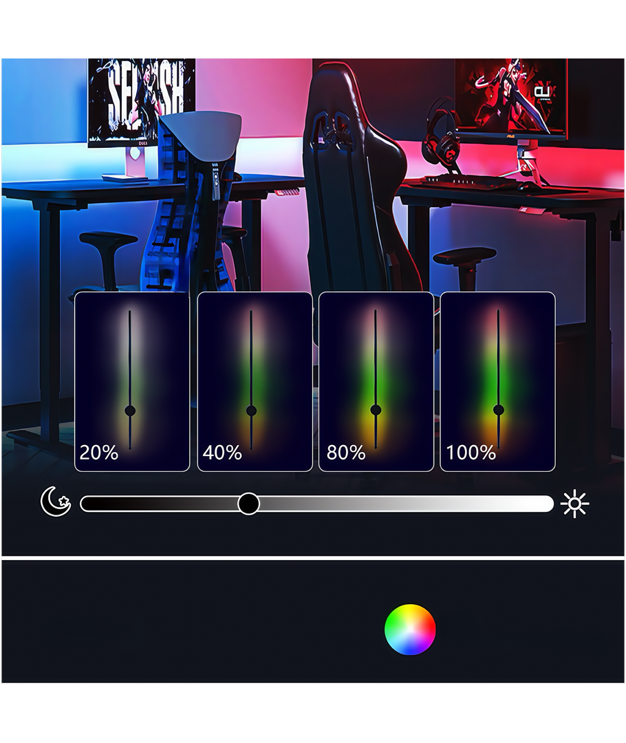 Denne 60 cm RGBIC vegglampe er skapt for å løfte ditt gaming- eller streaming-oppsett til neste nivå. Med dynamiske farger, reaktive effekter og total kontroll via app og fjernkontroll får du en lampe som matcher din stil – enten du gamer, ser film eller viser frem oppsettet ditt.