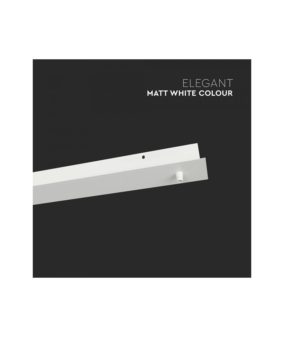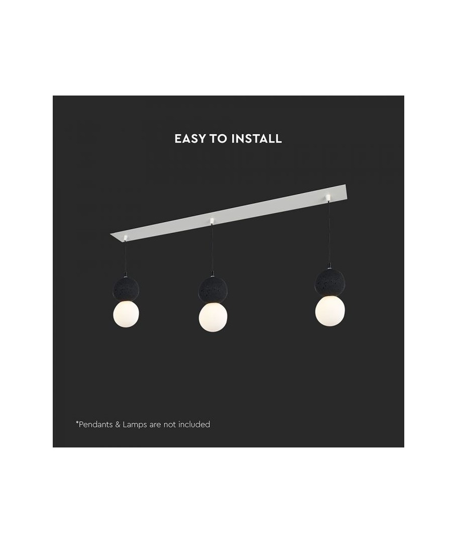 Denne avlange baldakin til 3 stk. pendeloppheng i matt hvit er en stilfull og funksjonell løsning for å skape et moderne og elegant utseende i hjemmet ditt, ideell for plassering over et bord eller i andre områder der et lineært lysoppsett er ønskelig.