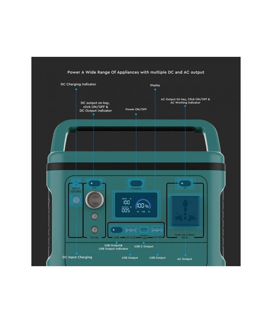 Denne allsidige 500W kraftstasjon er ideell for å holde enhetene dine ladet, uansett hvor du er, med en kapasitet på 568Wh og flere ladealternativer.