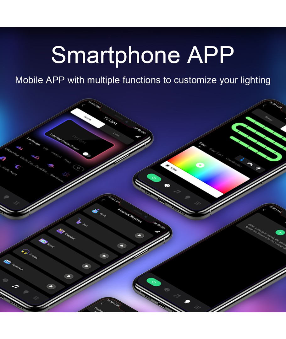 Forvandle TV-tiden til en visuelt engasjerende opplevelse med vår 3,8m lange LED-stripe, designet spesifikt for TV-størrelser mellom 55-65 tommer. Med denne lyssettpakken får du et moderne preg på underholdningsområdet ditt, i tillegg til en behagelig atmosfære.