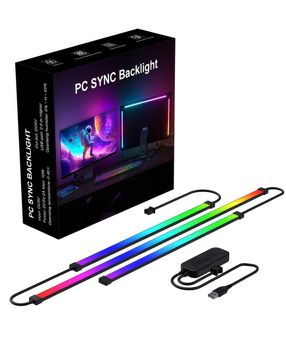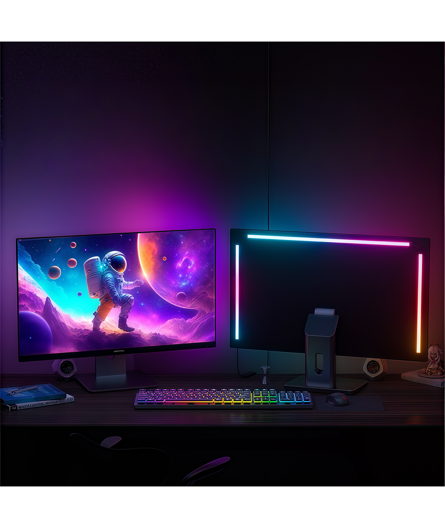 Gi oppsettet ditt nytt liv med RGBIC LED Bakgrunnsbelysning til PC-skjerm, som synkroniserer lyset i sanntid med spillingen eller musikken din. Perfekt for gamere som ønsker en mer intens, fargerik og stemningsfull opplevelse foran skjermen.