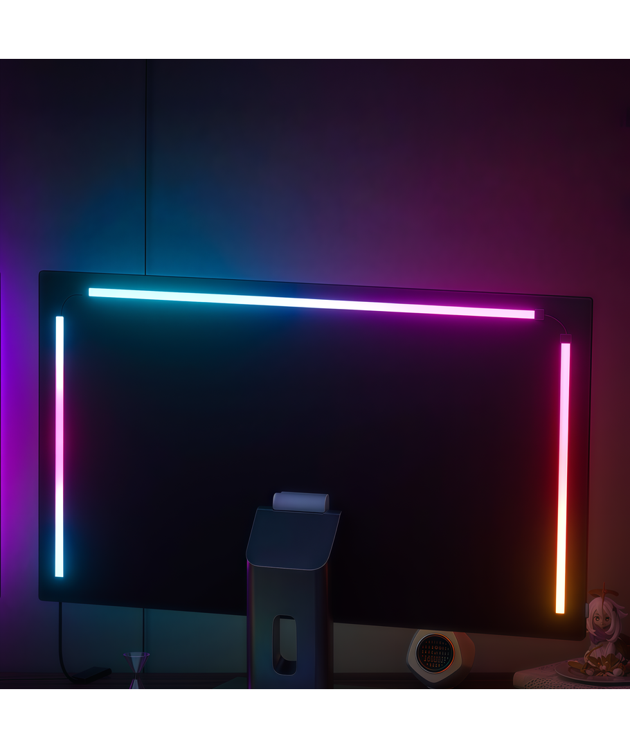 Gi oppsettet ditt nytt liv med RGBIC LED Bakgrunnsbelysning for PC-skjerm, som synkroniserer lyset i sanntid med ditt gameplay eller musikk. Perfekt for gamere som ønsker en mer intens, fargerik og stemningsfull opplevelse foran skjermen.