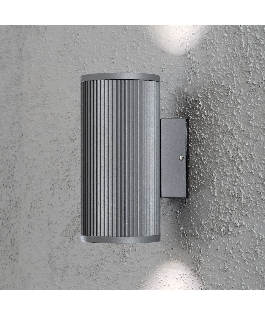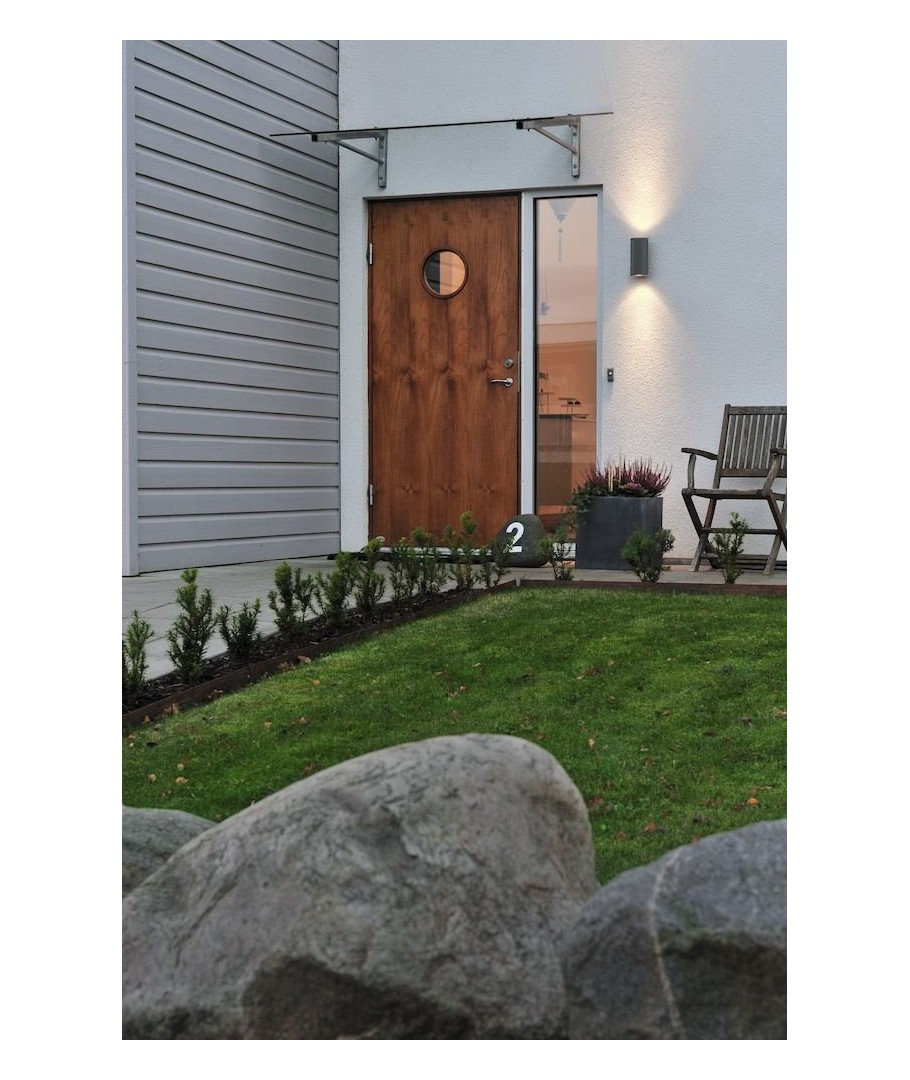 Lampen er utført i stål og har 2xGU10 fatning, som gir mulighet for opptil 2x35 watt halogen lyskilde.