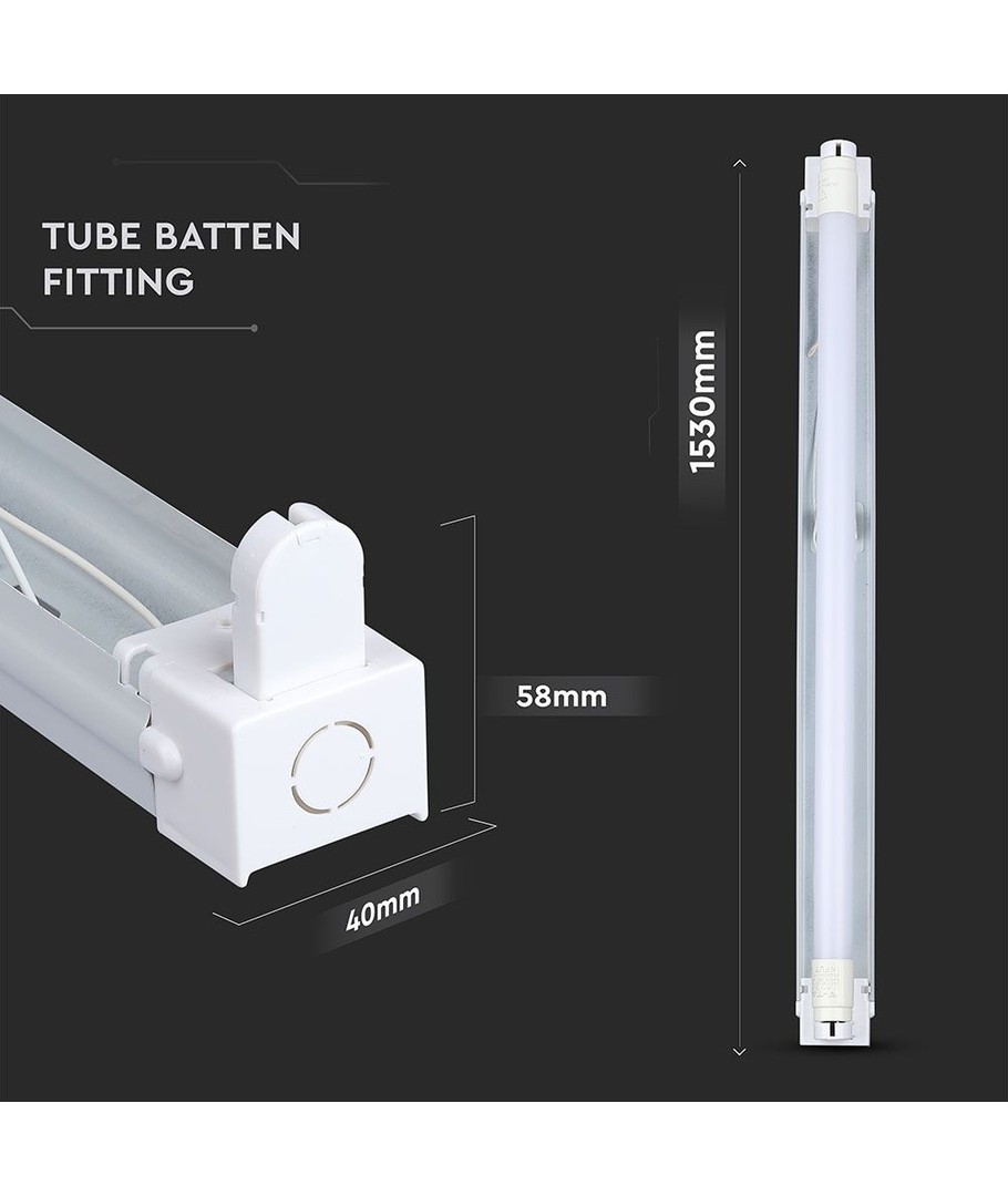 Til 1x 60cm LED-rør, IP65 vanntett