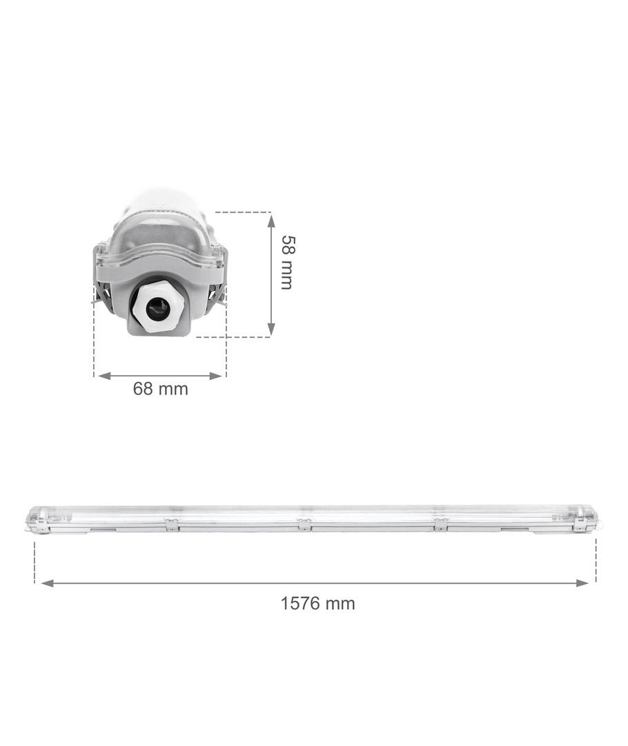 Vanntett armatur klar til 1 x 150 cm LED rør.