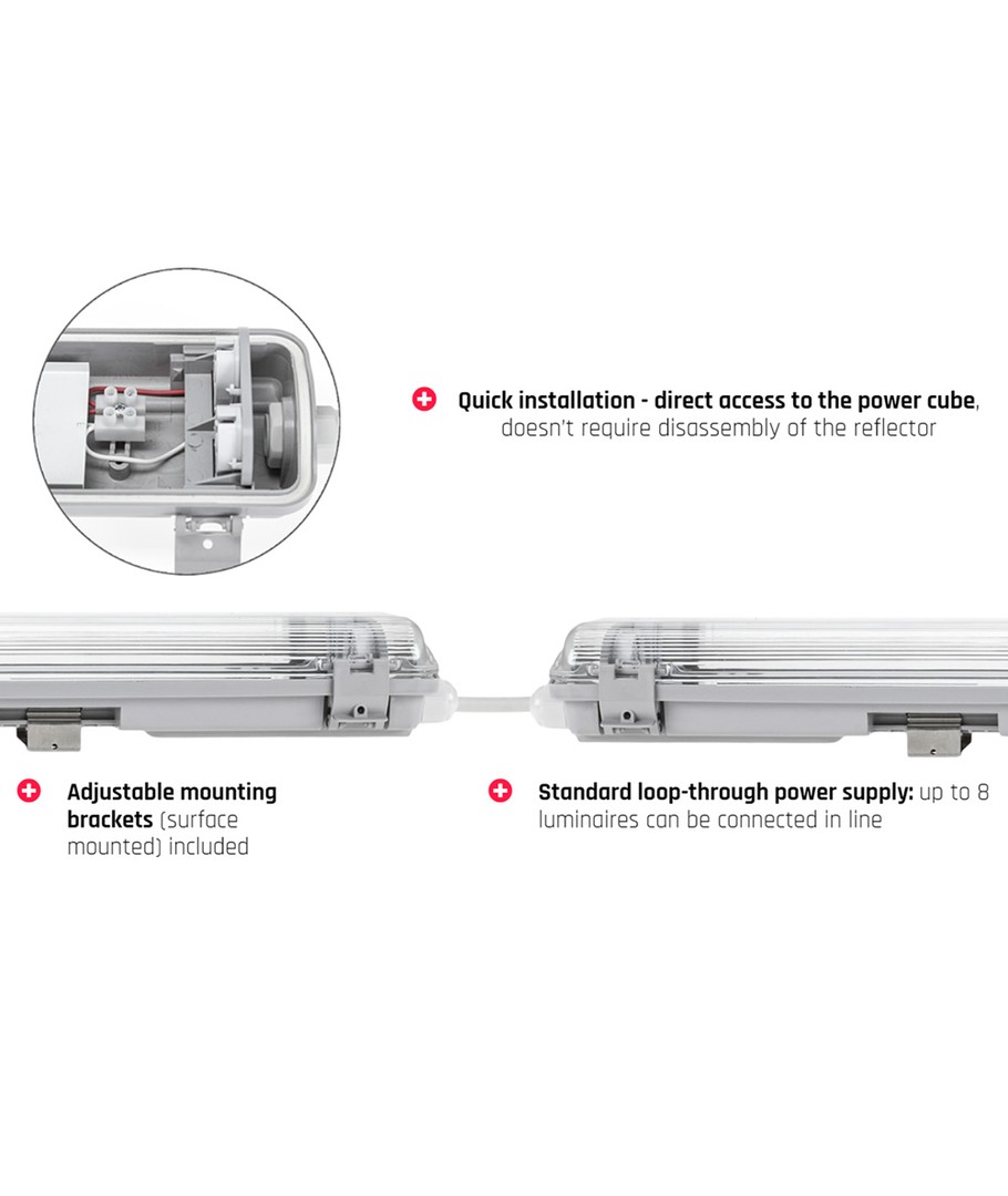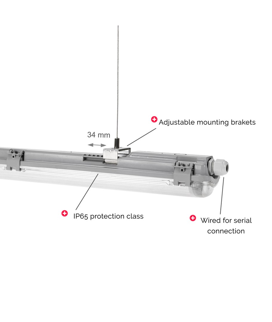 Oppgrader belysningen med en pålitelig og slitesterk belysningsløsning. Dette LED-armaturet er spesialdesignet for å passe 2x 120cm LED-rør og gir optimal lysytelse og effektivitet i en rekke miljøer.