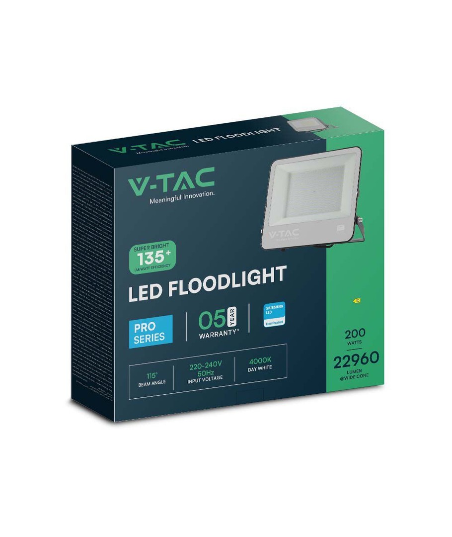 Oppdag den kraftfulle V-Tac 200W LED lyskasteren, som er spesialdesignet for å møte dine belysningsbehov både innenfor arbeidsområder og utendørs prosjekter. Med en imponerende lysstyrke på 22960 lumen og en bemerkelsesverdig lysspredning på 115 grader, gir den en fenomenal jevn fordeling av lys som dekker store områder uten problemer.