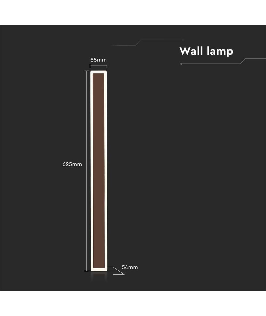 Med sine kompakte dimensjoner på 85 x 625 x 54 mm, er lampen enkel å montere på ulike veggflater. Den er designet for direkte tilkobling til en 230V forsyning, og leveres med en integrert lyskilde.