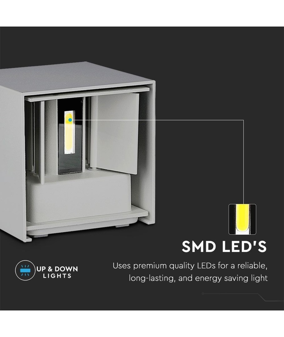 Oppgrader ditt uteområde med denne elegante 5W LED vegglampen. Med et IP65-sertifikat er den perfekt for utendørs bruk, og den robuste firkantede designen i grått gir et moderne preg til fasaden din.