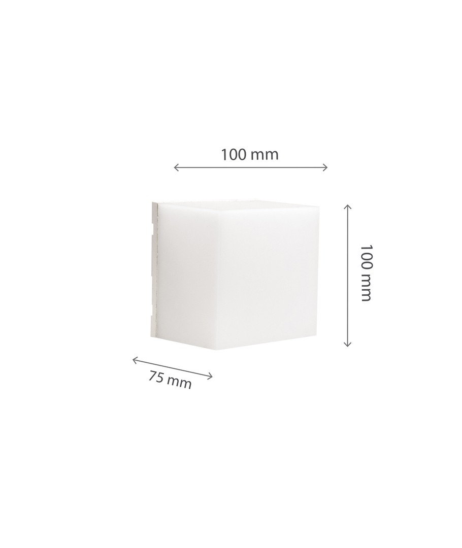 Med dimensjonene 100 x 75 x 100 mm, er Spectrum 5W CCT vegglampe kompakt nok til å passe inn i ulike utendørs omgivelser uten å være påtrengende. Den stilrene utformingen gir et moderne inntrykk som enkelt komplementerer din utendørs estetikk.