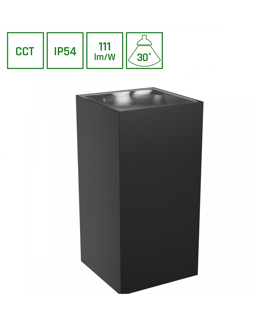 Opplev den elegante og allsidige Torre 18W svart opp/ned vegglampe, som bringer både stil og funksjonalitet til dine utendørsområder. Denne firkantede lampen er designet for å gi hjemmet ditt et moderne og sofistikert utseende, samtidig som den tilbyr fleksibilitet med tre justerbare lysfarger.