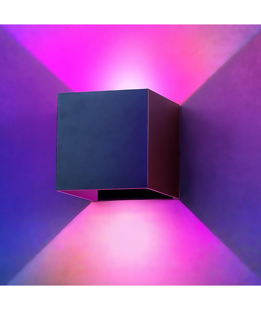 LEDlife RGB+CCT CUBIC 6W vegglampe er en moderne og stilfull sort, firkantet lampe, som kan brukes både innendørs og utendørs med IP65 beskyttelsesklassifisering.