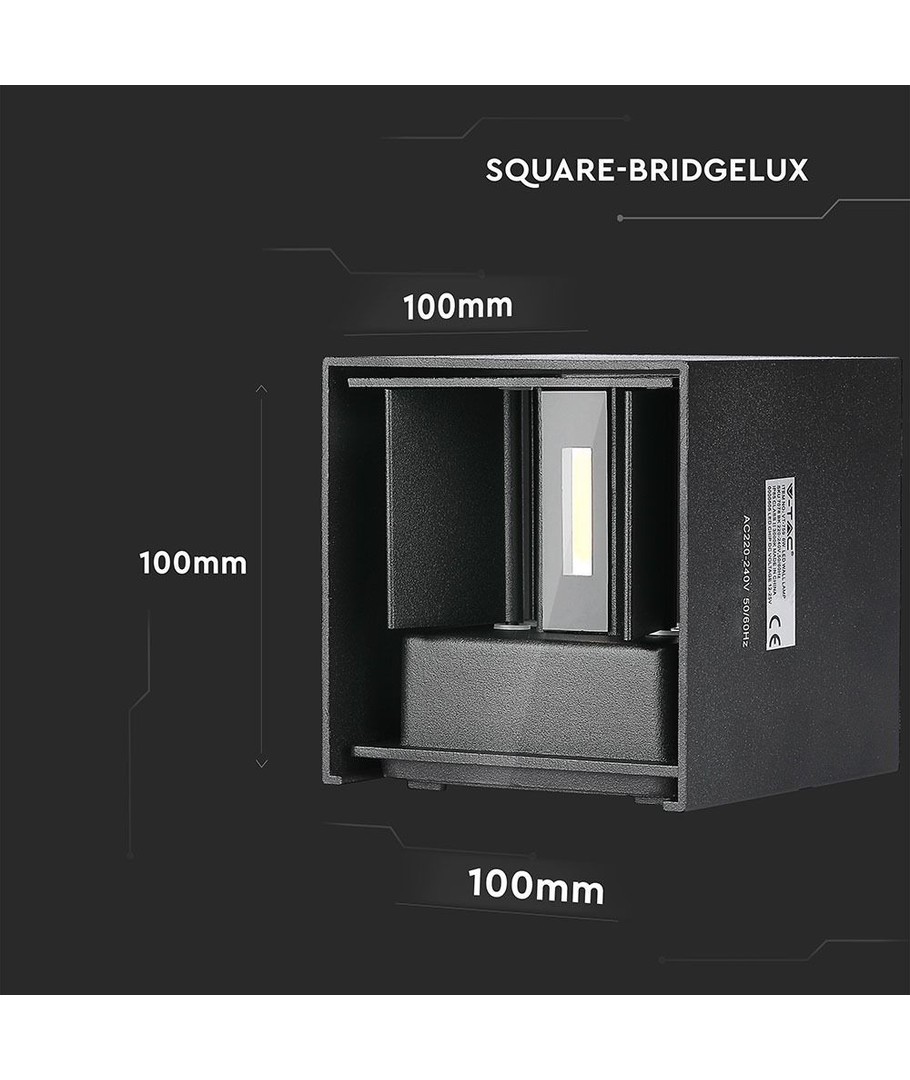 Dimensjonene på lampen er 100 x 100 x 100 mm, noe som gjør den kompakt nok til å passe i de fleste utendørsmiljøer uten å være påtrengende. Med den integrerte lyskilden er installasjonen enkel og brukervennlig.