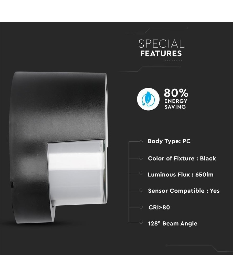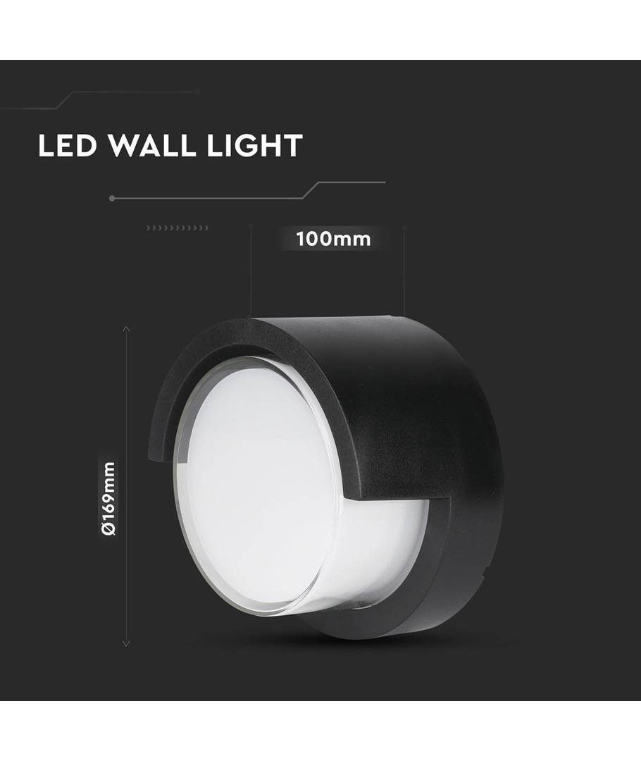 Opplev det perfekte utendørslyset med denne stilige, rundformede, sorte LED vegglampen. Designet for å gi optimal belysning, kombinerer denne lampen både funksjonalitet og estetikk.