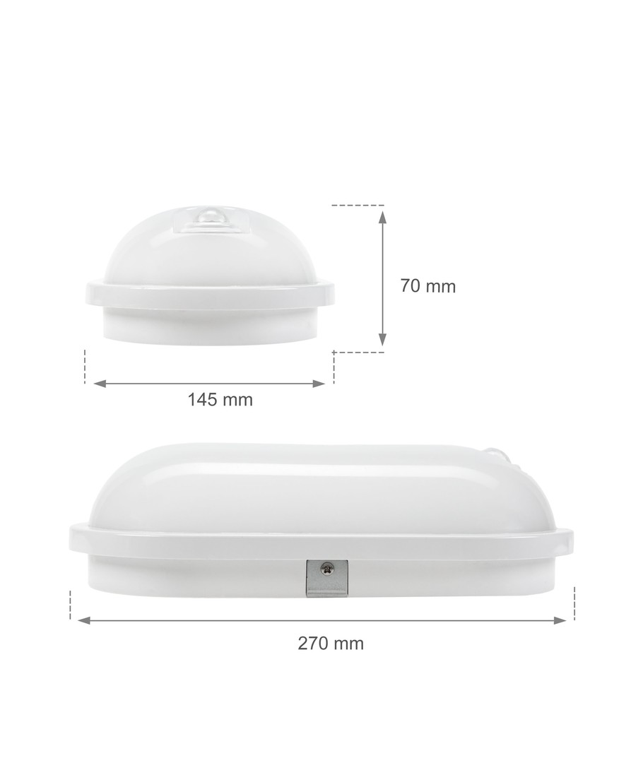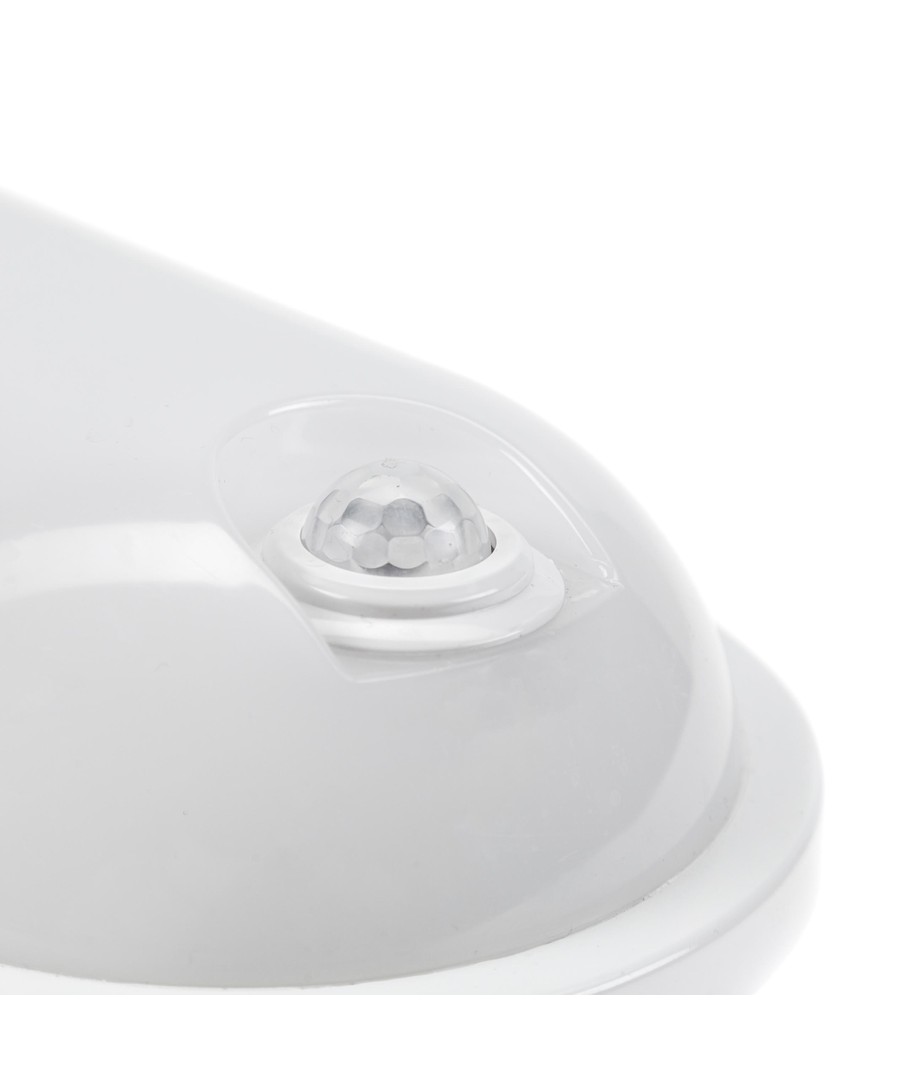 Lampen krever en tilkobling til 230V forsyning, og inkluderer en PIR sensor som aktiverer lyset ved bevegelse, noe som gir både bekvemmelighet og energisparing.