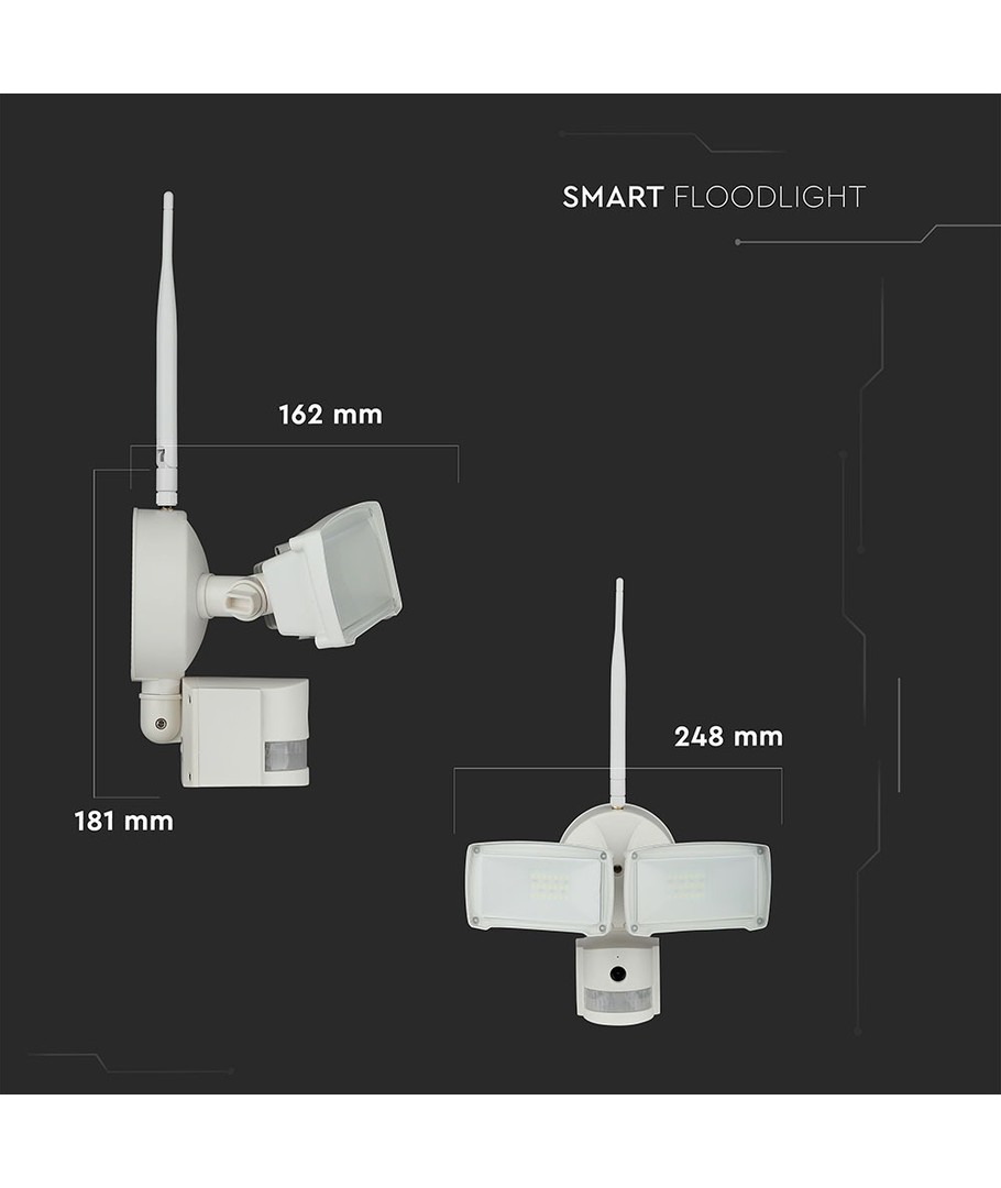 Med det integrerte WiFi-sensorkameraet, kan du enkelt overvåke rundt huset eller i næringslokaler, noe som gir ekstra sikkerhet. Det bør bemerkes at enheten ikke er vannbestandig og bør installeres i tørre områder.
