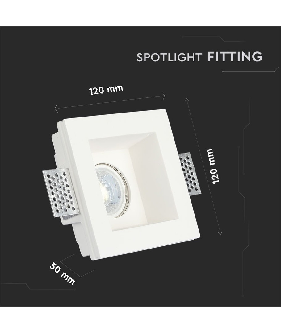 Til GU10, 121 x 121 mm, IP20 innendørs, kan males