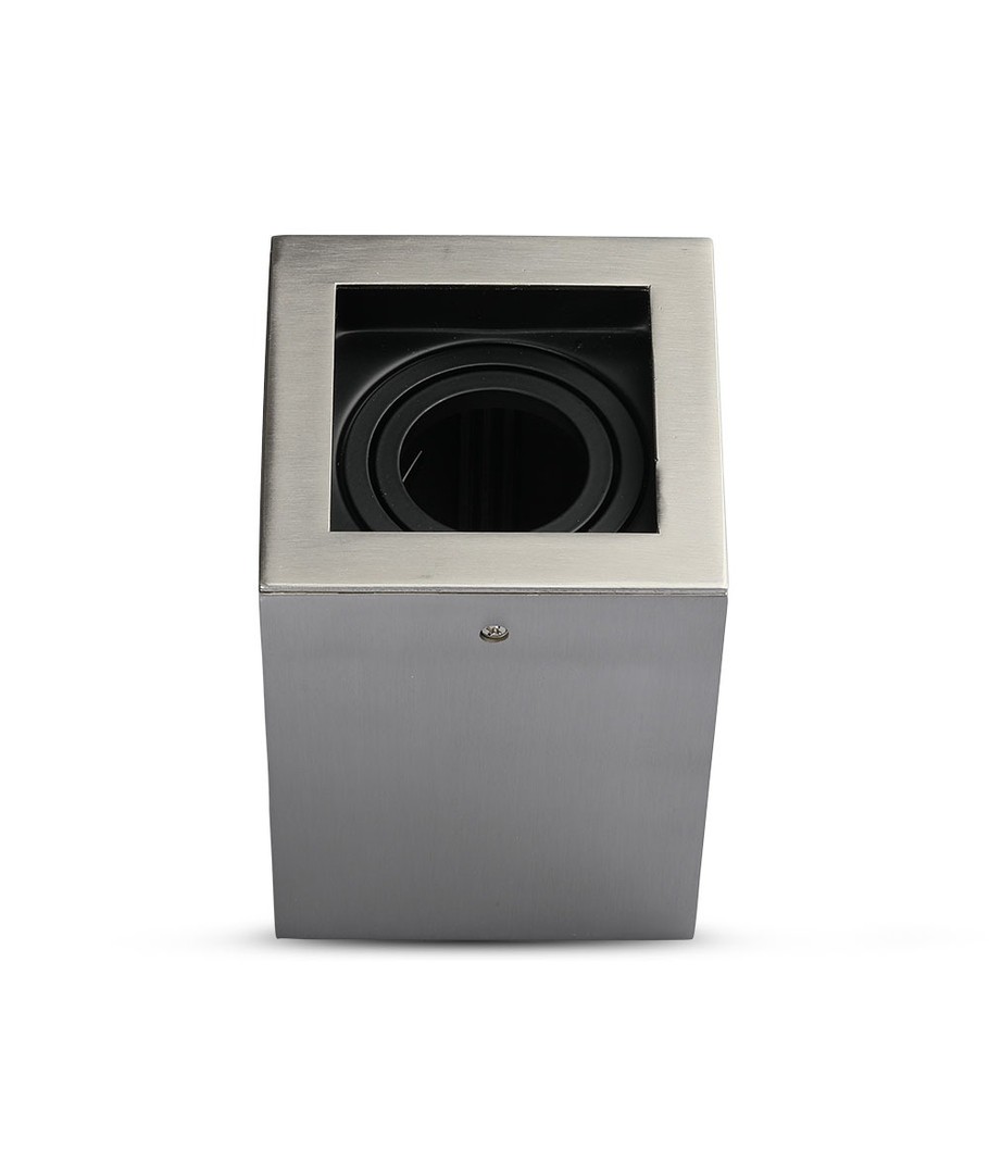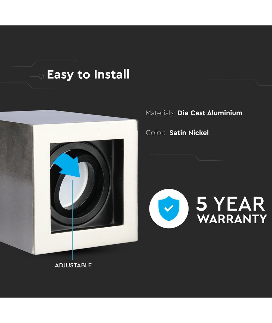 GU10 LED-spotlight i satin nikkel med et firkantet design, ideell for moderne interiør.