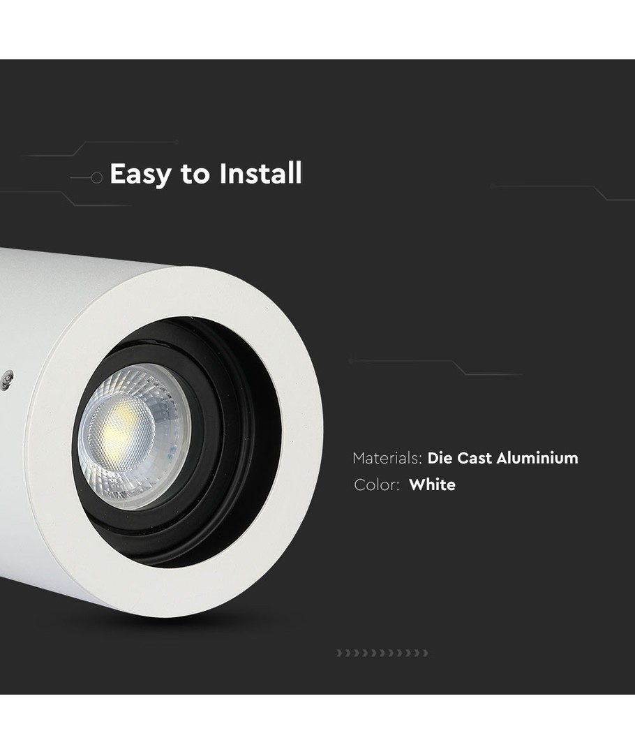 Hvit, aluminium, IP20 innendørs, Hull: Ø7,3 cm, Mål: Ø8,1 cm