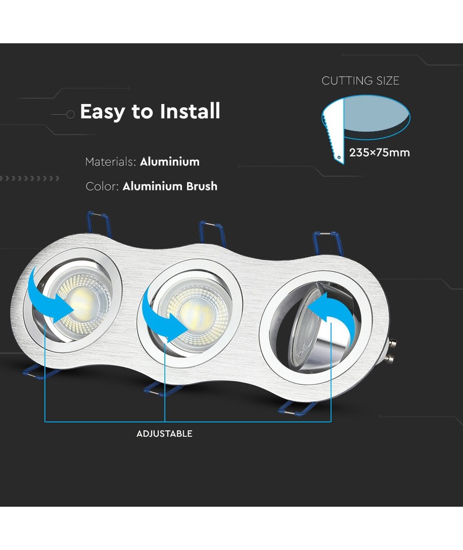 Rustfritt stål, justerbar, hull: Ø7,4 cm, IP20