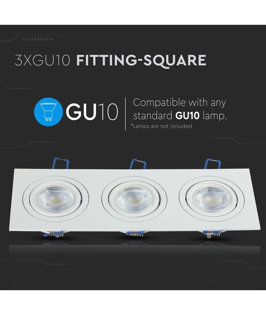 Til GU10, 121 x 121 mm, IP20 innendørs, kan males
