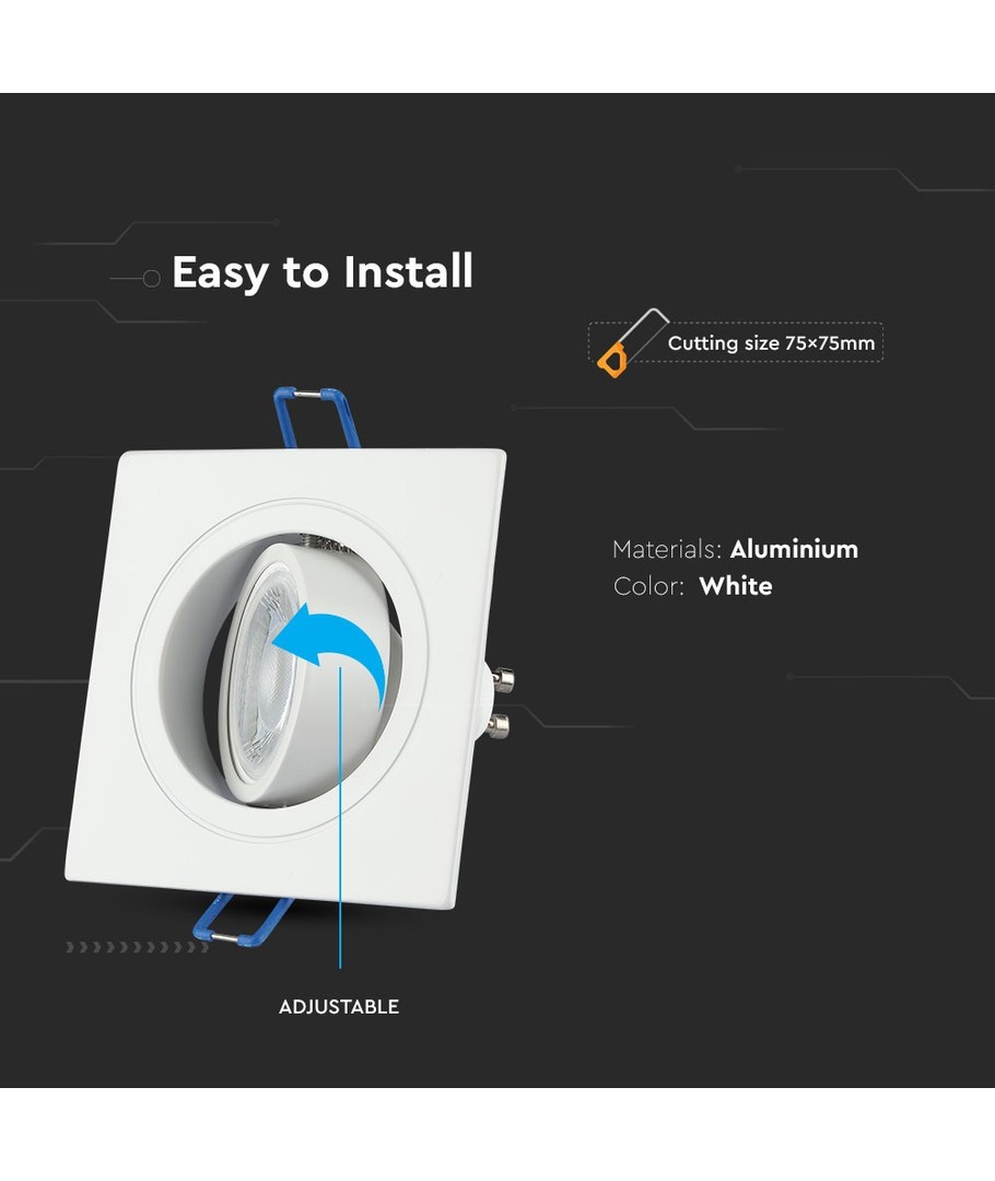Til GU10, 121 x 121 mm, IP20 innendørs, kan males