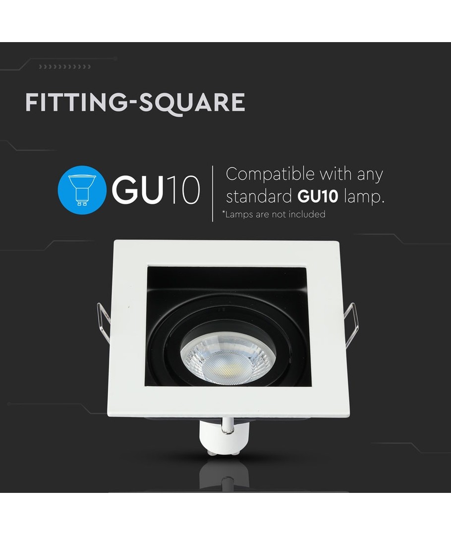 Til GU10, 121 x 121 mm, IP20 innendørs, kan males
